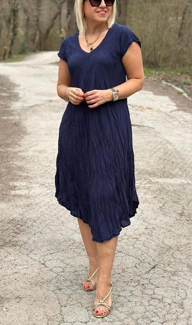 Elevate your everyday wardrobe with this Women's V-Neck A-Line Dress, a timeless piece that balances Scandinavian-inspired minimalism and laid-back sophistication.