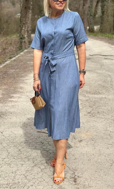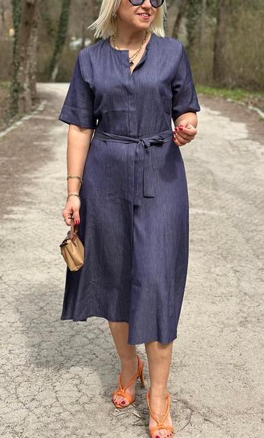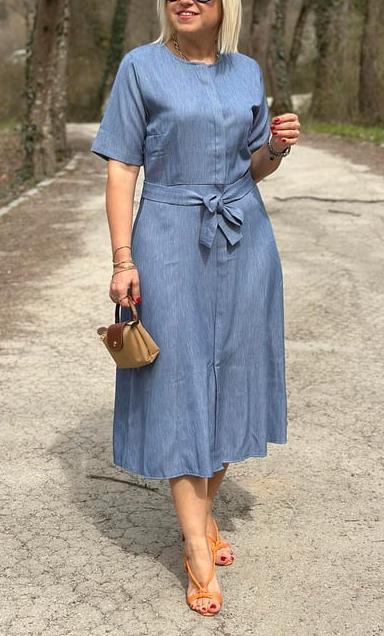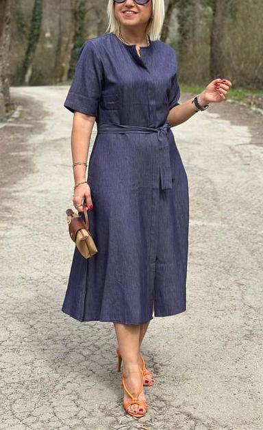 NEW🔥Women's Denim Shirt Dress with Blue Belt